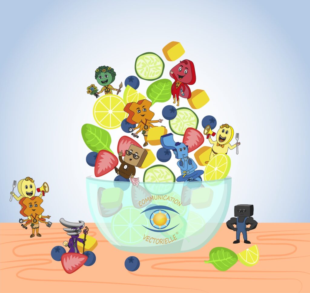 Vous l’aurez bien compris, je ne parle pas que de fruits dans cet article, mais bien de la richesse de la diversité des vecteurs autour de nous, et en nous, et de ce parfait équilibre naturel, qui répond à nos besoins tant individuels, que professionnels ou sociétaux. Soyons à l’écoute de chaque vectorion qui s’exprime, chez soi et chez l’autre, car bien équilibrés et bien nourris, ils sont la clé pour « croquer la vie ».
